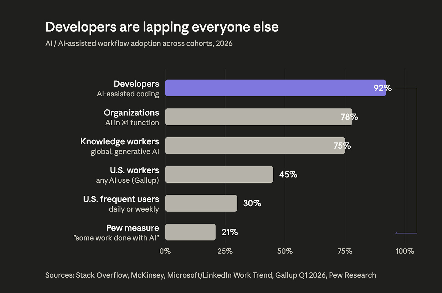 It looks ridiculous when we compare it to overall adoption between sectors. Developers are lapping everyone.